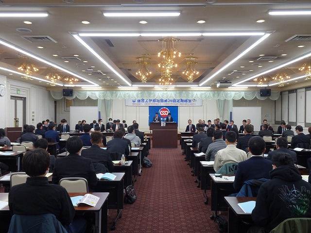 連合上伊那地協は第36回定期総会を、12月4日(木)17時00分より、「JA上伊那本所フラワーホール」において開催し、代議員53名役員23名が参加しました。